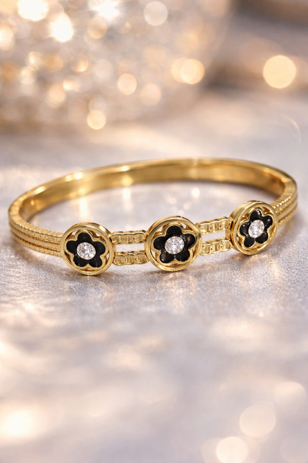 Elegant Floral Motifs: Classic flower design with black enamel detailing