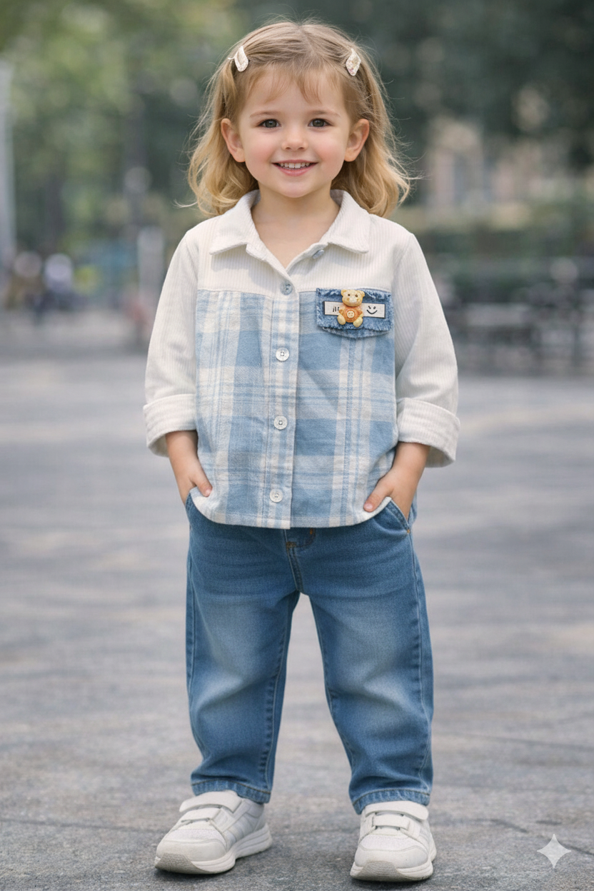 Dress your little one in effortless charm with this adorable checked shirt , designed for comfort, style, and playful elegance. Featuring soft pastel tones and a sweet teddy patch detail, this outfit is perfect for both casual outings and special moments.