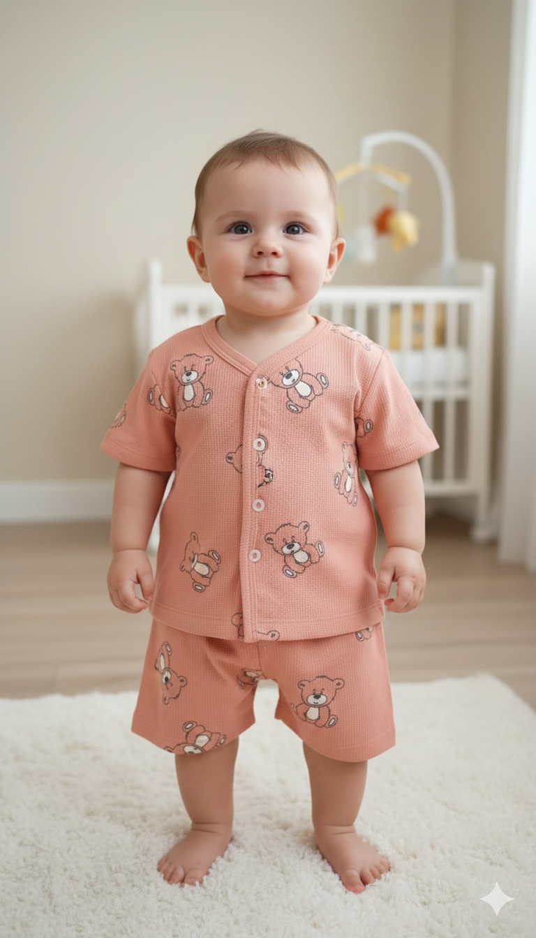 JB0070-Baby Cotton Nightwear Set – Teddy Bear Print