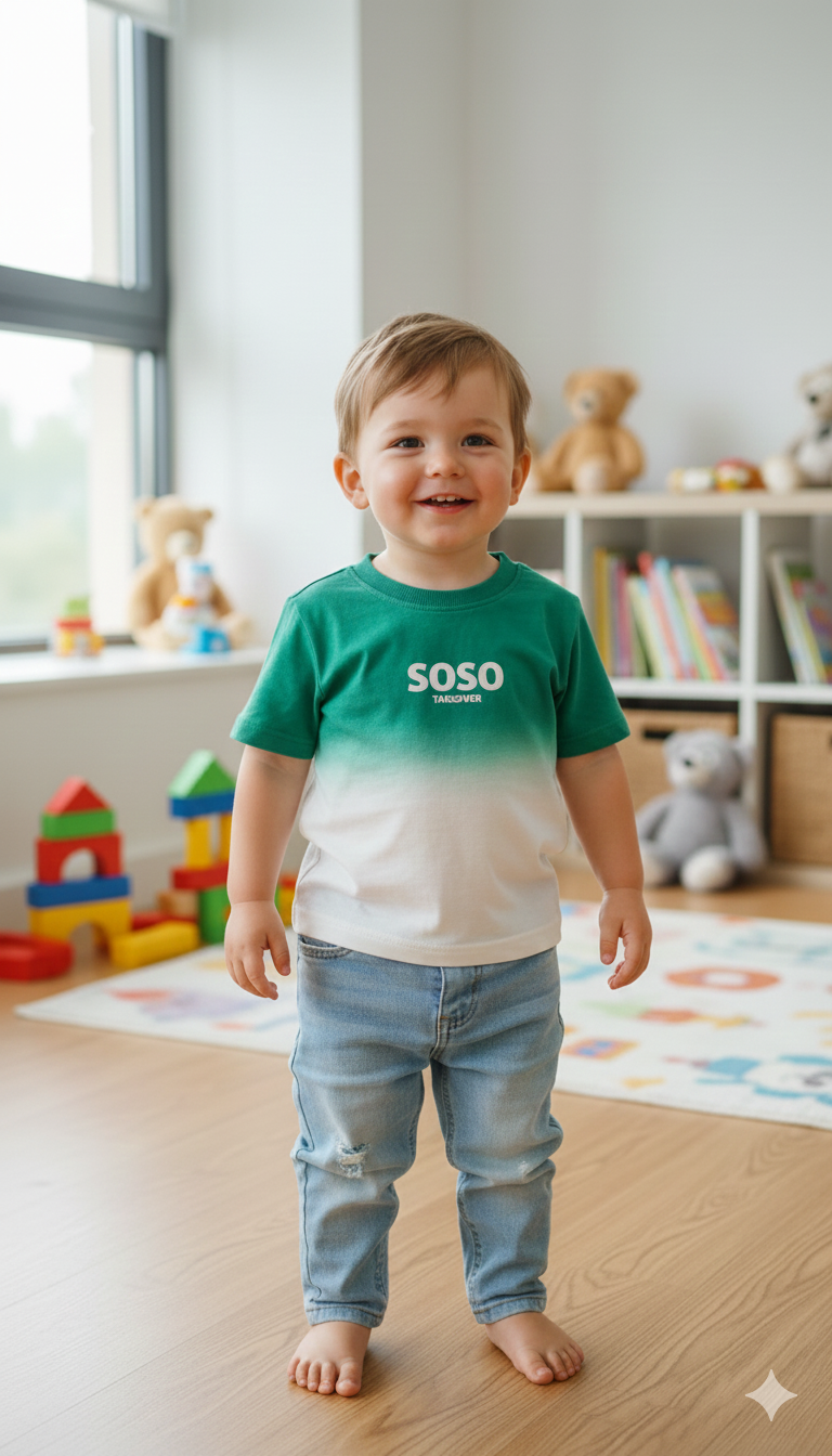 K0064-Baby Boys Ombre Cotton T-Shirt – Green & White