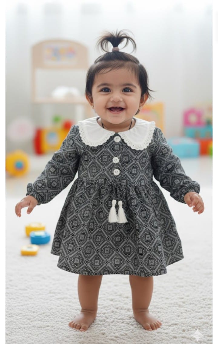 K0066-Baby Girls Printed Dress with Peter Pan Collar