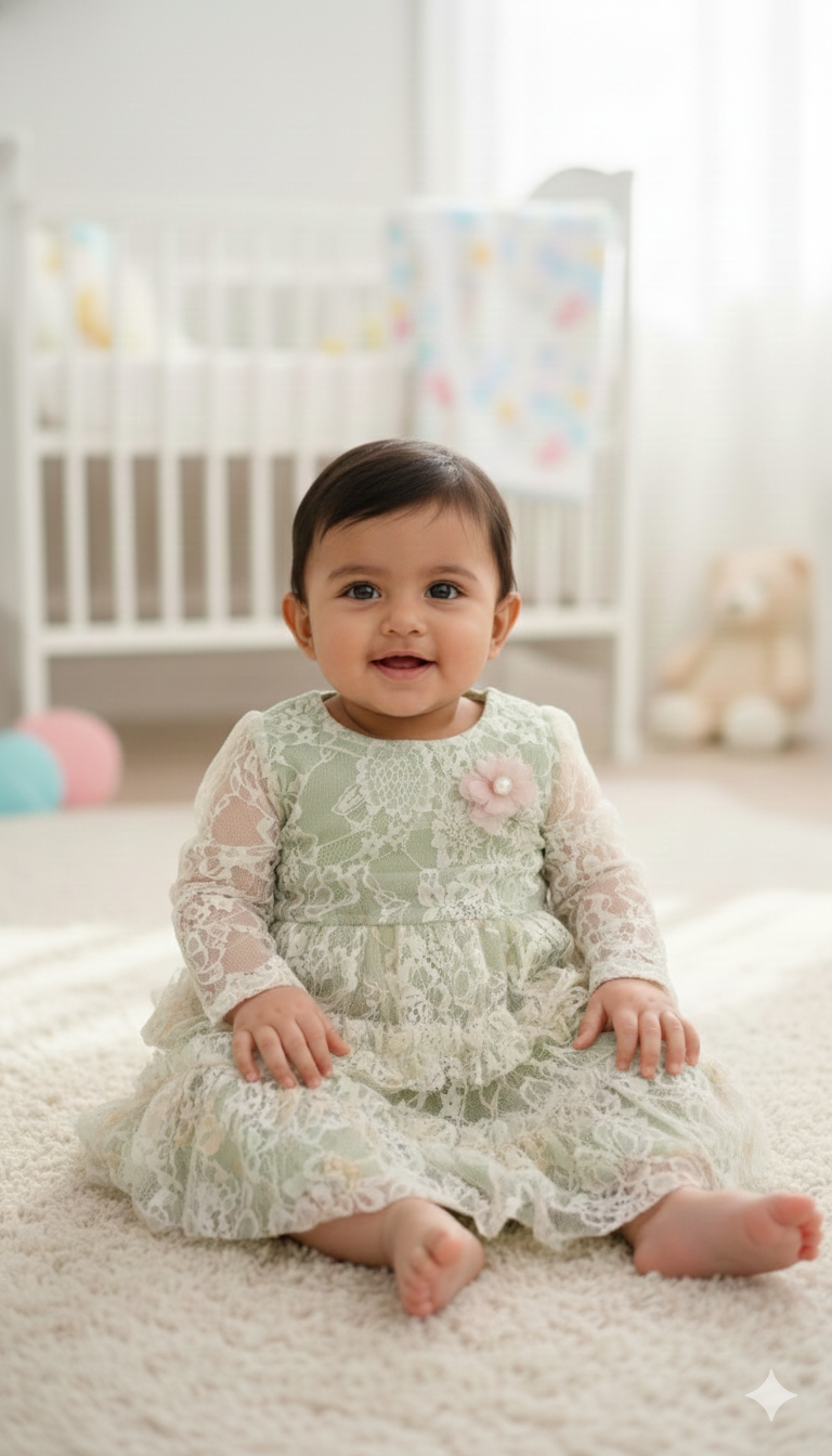 • Soft Lace Fabric with Inner Lining: Gentle on baby’s skin while offering a rich, stylish look