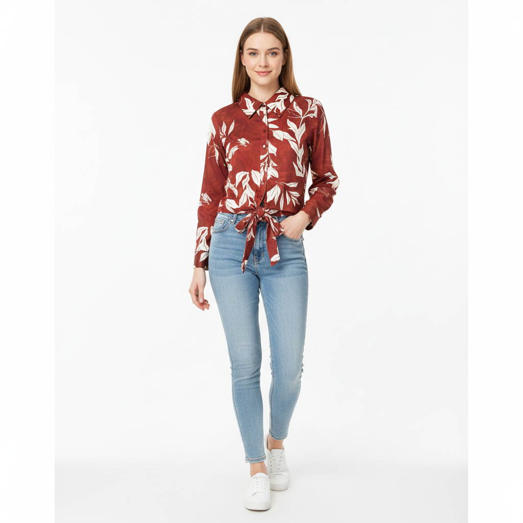 Stylish front tie-up hem for a modern fit