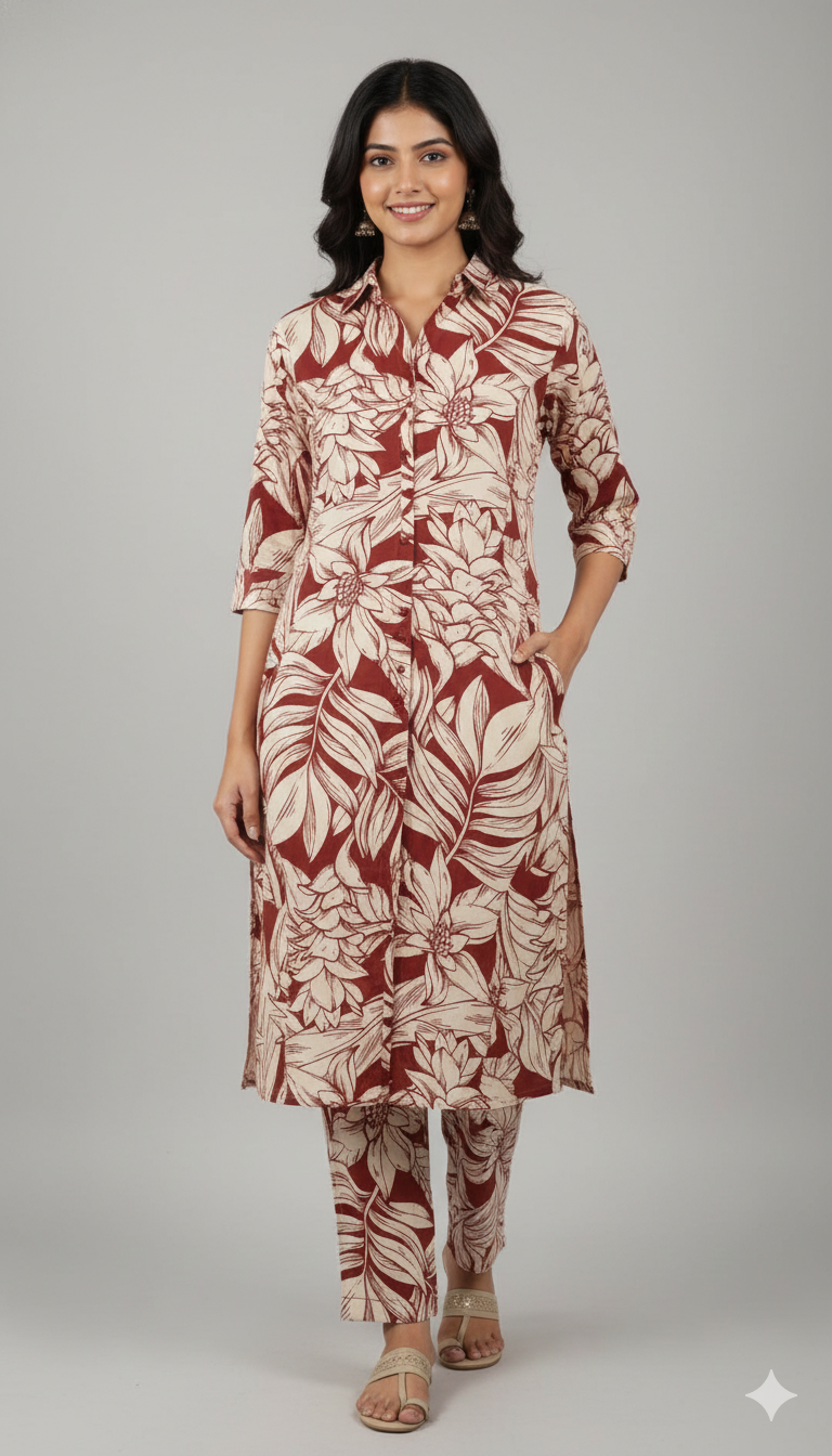 Be the first to review “W0265-Rust Brown Floral Printed Co-Ord Set with Pants”
